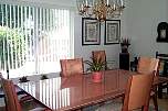 Outside the apartment. The center doors and balcony are ours; the dining room windows are hidden behind the trees to the left, and the living room windows are to the right of the door, between the hideous lamps. |
