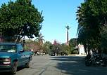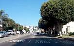 Leaving our street, about to turn right on the way to work. Yes, tall palm trees are everywhere in L.A. |