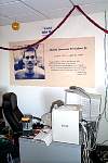My always-messy desk. Since World AIDS Day was December 1st, I did a display of the quilt panel I had made for my friend Henry on the wall. |