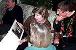 Wendy, Lori, and Rita look at the original wedding photograph from 1951. |