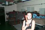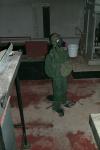 Kaleigh next to the anti-radiation suits.