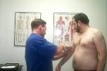 Tony taking a body-fat measurement using